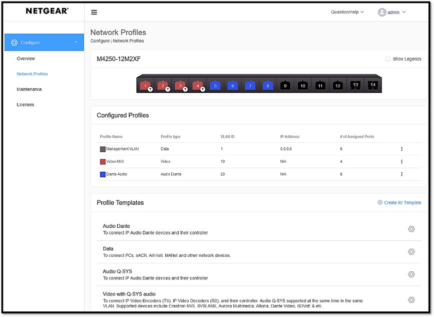 M4250シリーズは、これまでのマネージスイッチのWeb GUIに加え、IT用語に触れる機会が少ないAV業界の方でも直感的に操作可能な、AV用のWeb GUIも用意しています。ポートを選択し、そのポートで使うアプリケーションを指定するだけで設定が完了です。
