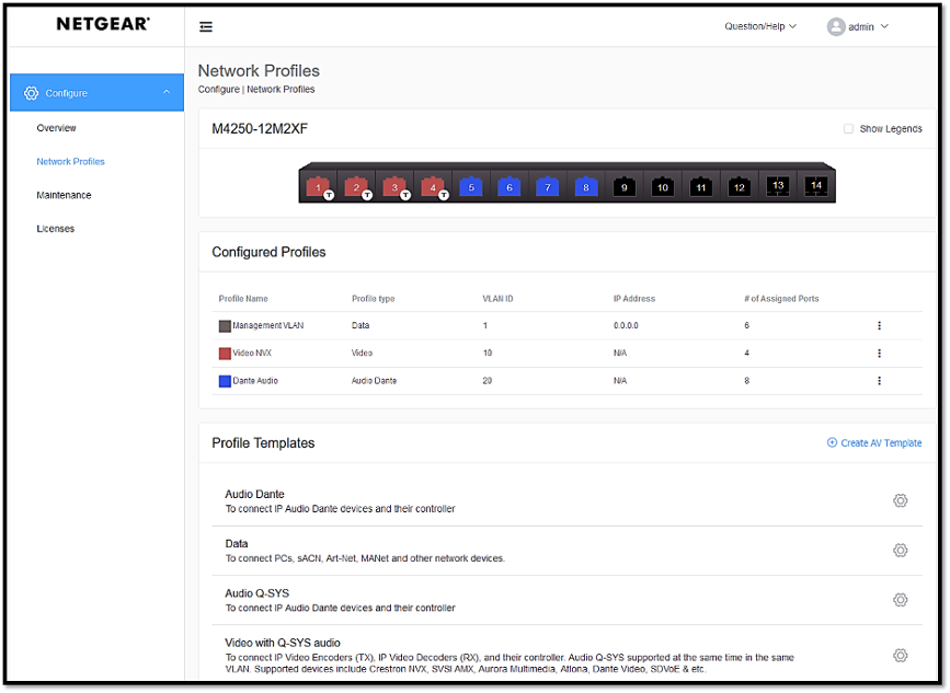 M4250シリーズは、これまでのマネージスイッチのWeb GUIに加え、IT用語に触れる機会が少ないAV業界の方でも直感的に操作可能な、AV用のWeb GUIも用意しています。ポートを選択し、そのポートで使うアプリケーションを指定するだけで設定が完了です。