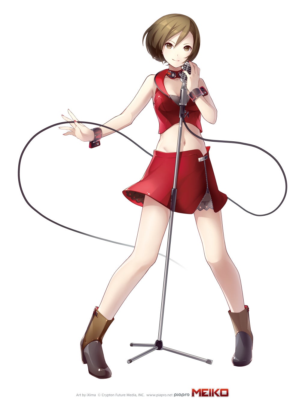 パッケージに描かれた「キャラクター」としては、栗色のショートボブと、赤いショート丈のトップスとミニスカートが特徴。大勢のクリエイターが『MEIKO』を用いた作品を生み出したことで、今ではバーチャル・シンガーとしてグッズ展開やライブを行う等、多方面で活躍するようになり、人気は世界に拡がっております。