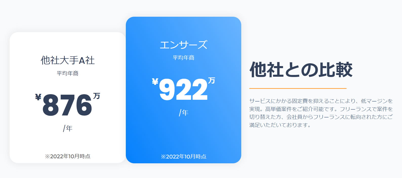 サービスにかかる固定費を徹底的に抑えることにより、低マージン(5~10万円)を実現。結果的に他社さまより高単価で案件をご紹介可能です。