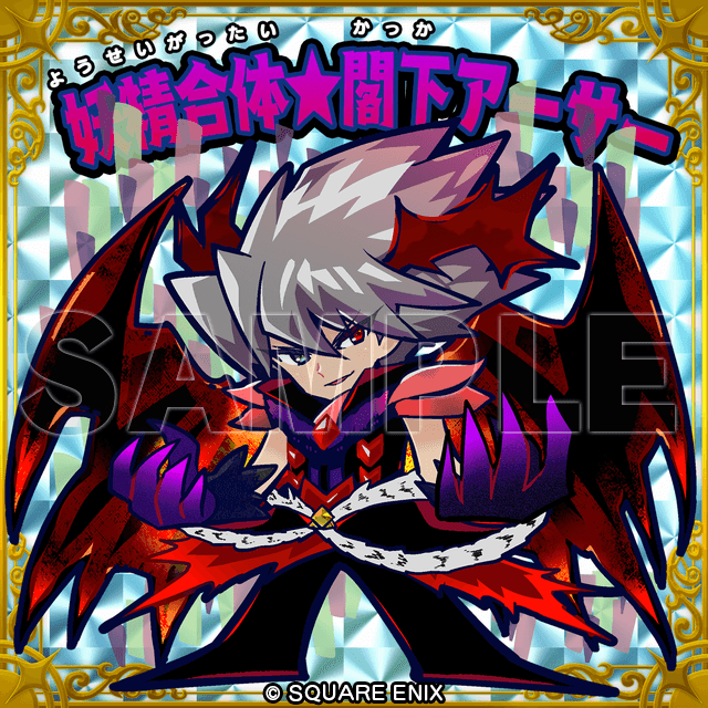 第五弾「-閣下と秘密の神殿-」のキャラクターシールは、「叛逆性ミリオンアーサー」に登場した「閣下アーサー」を中心にしたパックです。4コママンガシールはこれまでと同様に、ちょぼらうにょぽみ先生による「弱酸性ミリオンアーサー」の完全新作4コマ漫画となります。これまで「弱酸性ミリオンアーサー」にも登場していなかったミリオンアーサーシリーズのキャラクター達が登場します。