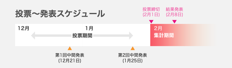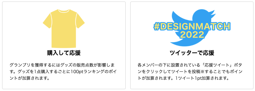 各メンバーの下に設置されている「ツイートして応援」ボタンをクリックしてツイートを投稿することでもポイントが加算されます。1ツイート1pt加算されます。