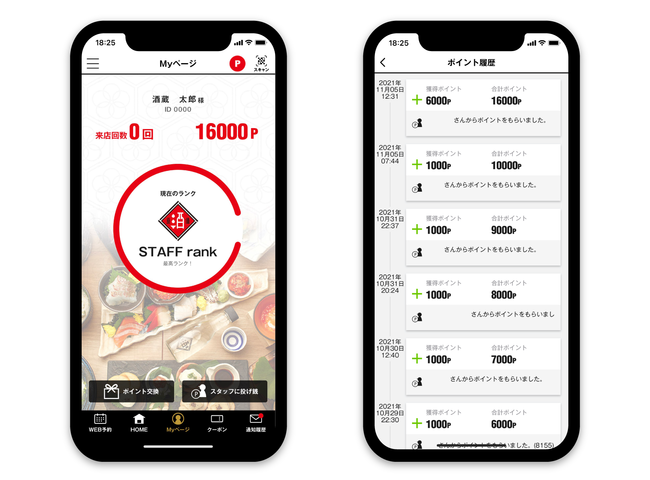来店翌日にアプリ内でアンケートにお答えいただくことでポイントを獲得できます。