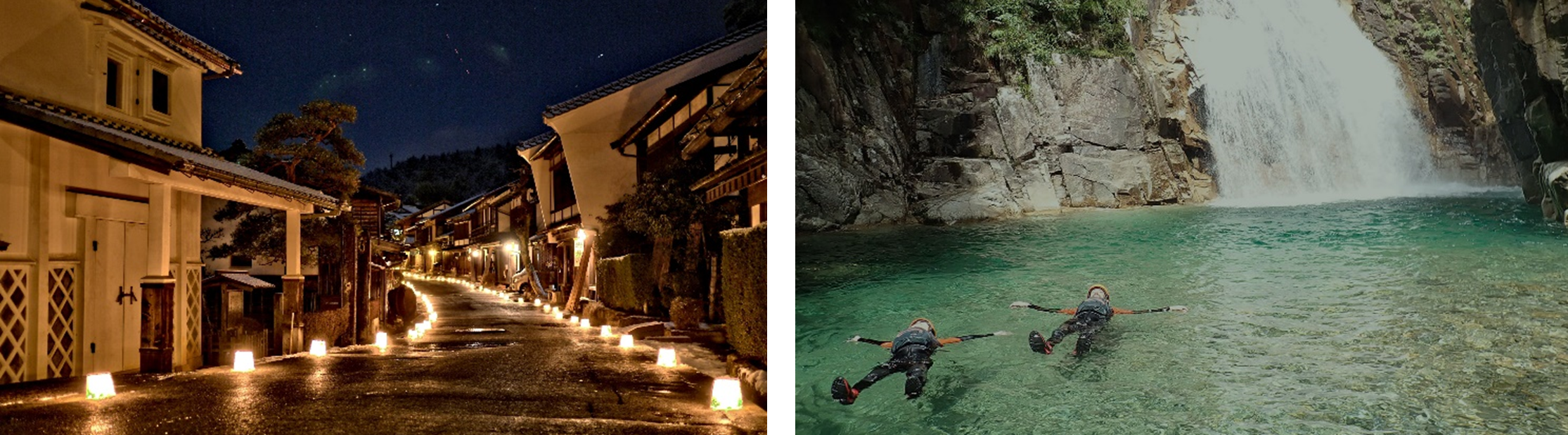 「森林浴デトックス・ハイキング」では、いま、世界で注目される「森林浴」を体験できます。森の中に残された古道・中山道をハイキングしながら、木曽ヒノキなどの天然木が発生させる「マイナスイオン」と「フィトンチッド」と呼ばれる物質(香り)がストレスを和らげて、リラックス効果が得られるといわれています。