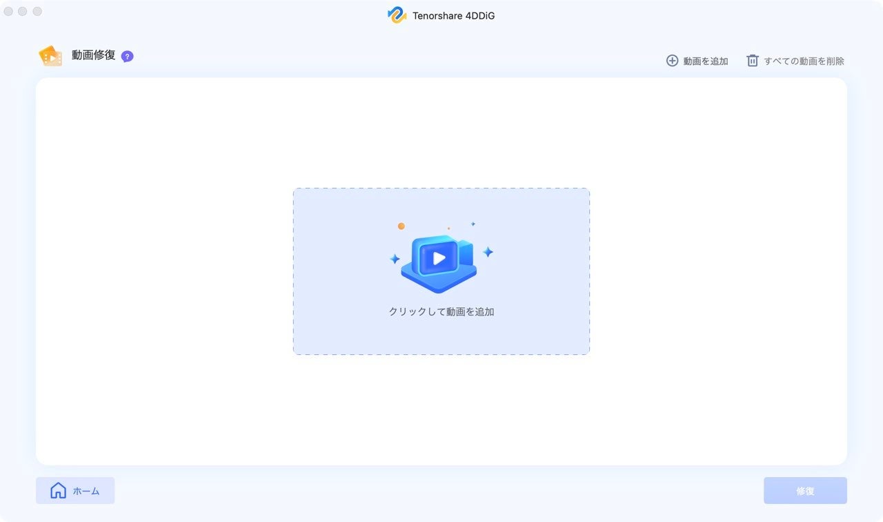 手順2.クリックして破損した動画を追加し、右下の「修復」をクリックします。