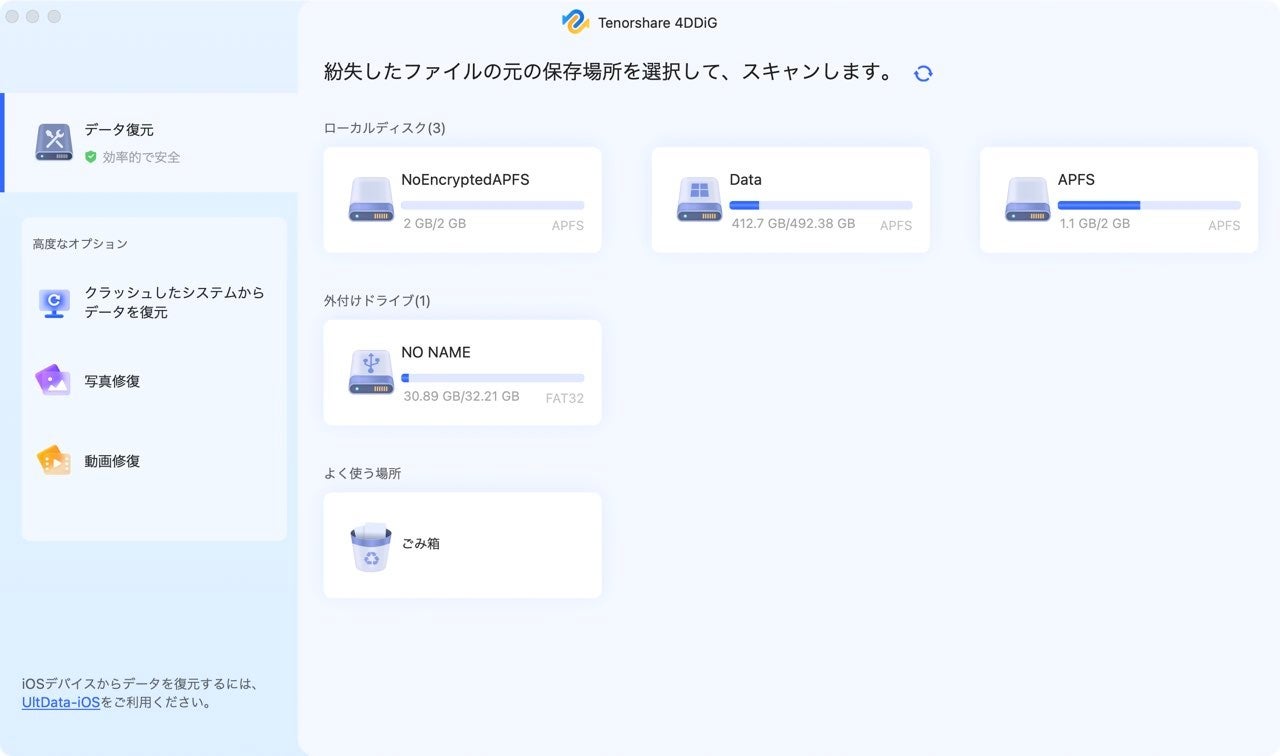 ガイド:https://4ddig.tenorshare.com/jp/4ddig-mac-data-recovery-guide.html