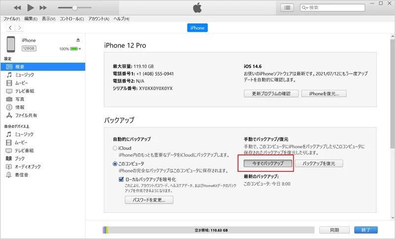 - 最後に、「今すぐバックアップを作成」をタップします。