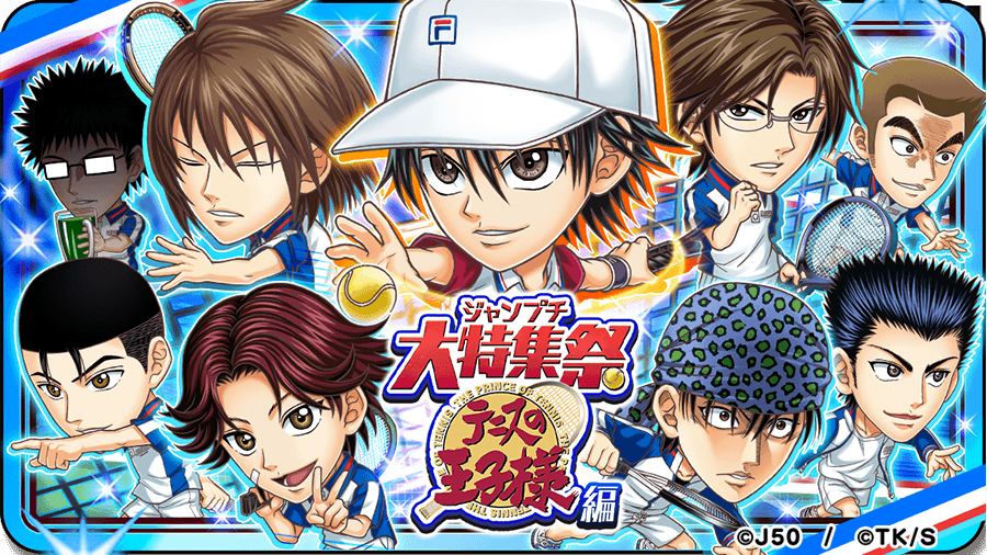 「ジャンプチ ヒーローズ」は、本日より『テニスの王子様』を特集した「ジャンプチ大特集祭 テニスの王子様 編」を開催いたします。『週刊少年ジャンプ』で1999年に連載開始から瞬く間に人気を博し、シリーズ発行部数は4,000万部を突破。テレビアニメおよび劇場用アニメーション、さらには舞台やゲームなど様々な方法でメディアミックスされ、2012年に連載終了した現在も高い人気を誇る『テニスの王子様』の世界がついに「ジャンプチ ヒーローズ」に降臨。