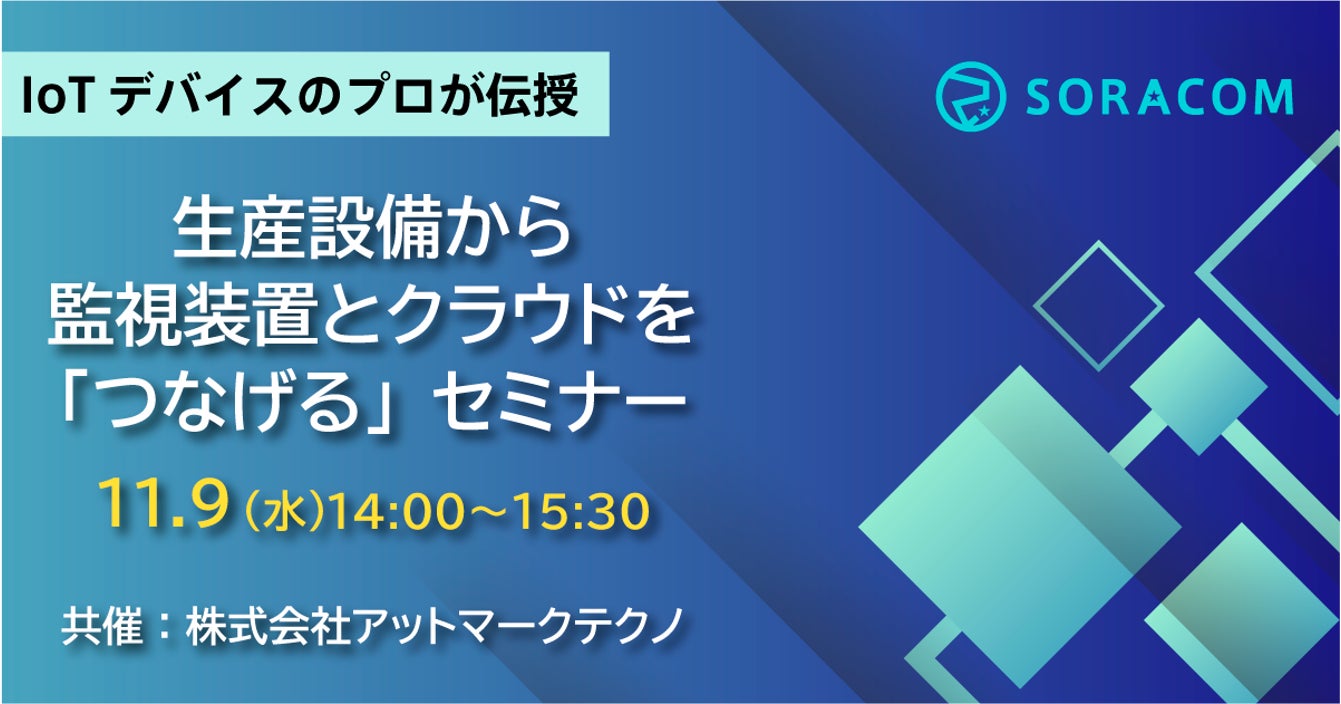 株式会社ソラコムは、生産設備から監視装置とクラウドの「つなげる」方法を解説するセミナーを2022年11月9日(水)に開催します。