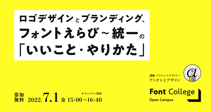 タイトル:Font College Open Campus「ロゴデザインとブランディング、フォントえらび〜統一の『いいこと・やりかた』」