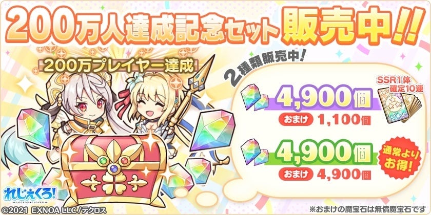 『れじぇくろ!~レジェンド・クローバー~』のプレイヤーさまが200万人を突破しました!