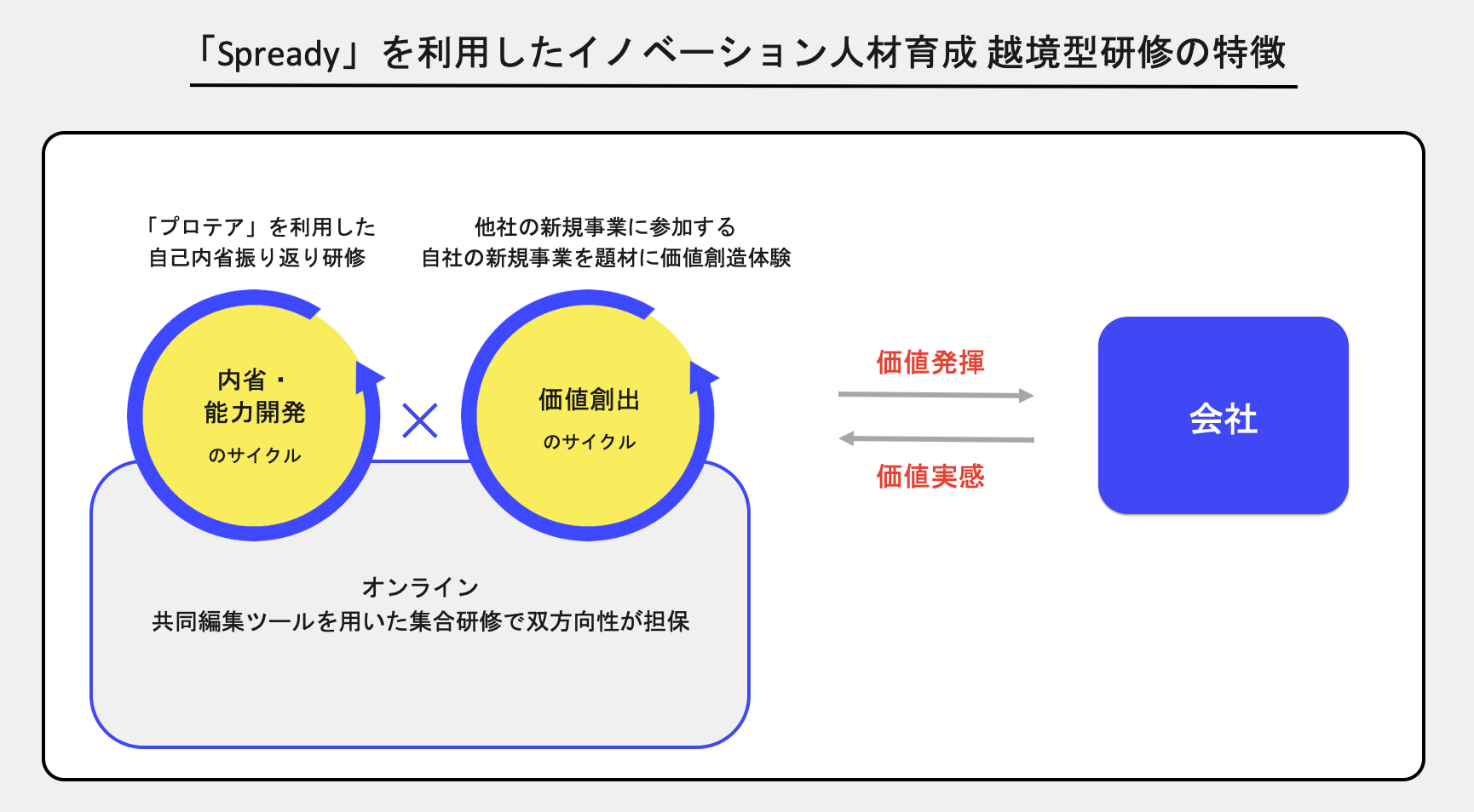 通常のサービス個人利用に加え、「プロテアの越境体験プログラム実証」用に、セッションのマッチングコンシェルジュの配置や前後の振り返りセミナー等を実施することにより、実施における社員の成長やその後の社内での価値還元を追求していく予定です。