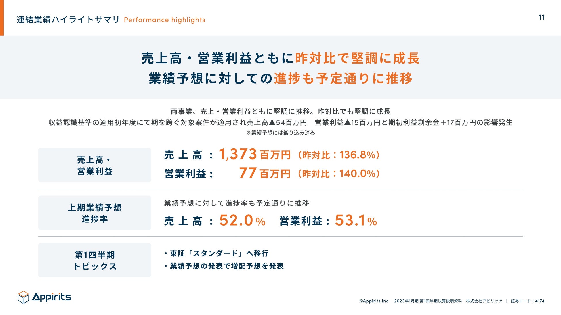 - 2023年1月期 第1四半期 業績ハイライト(決算説明資料一部抜粋)
