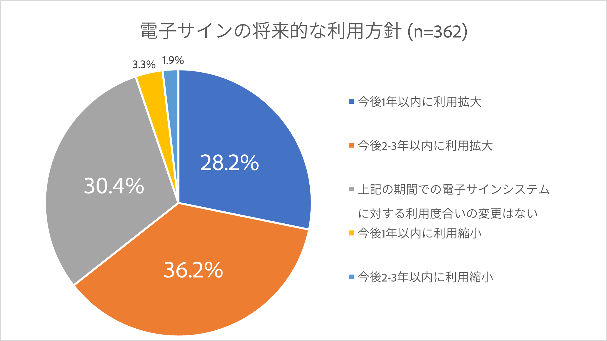 - 電子サインを導入している企業の64.4%が、今後3年以内に利用を拡大する方針