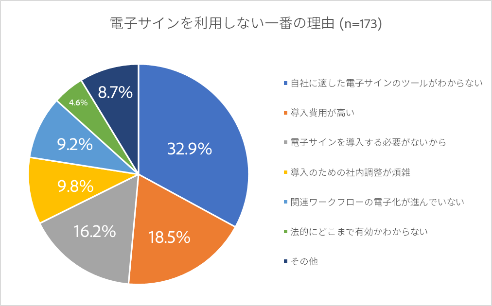 - 企業が電子サインを利用しない一番の理由が、「自社に適した電子サインのツールがわからない」から