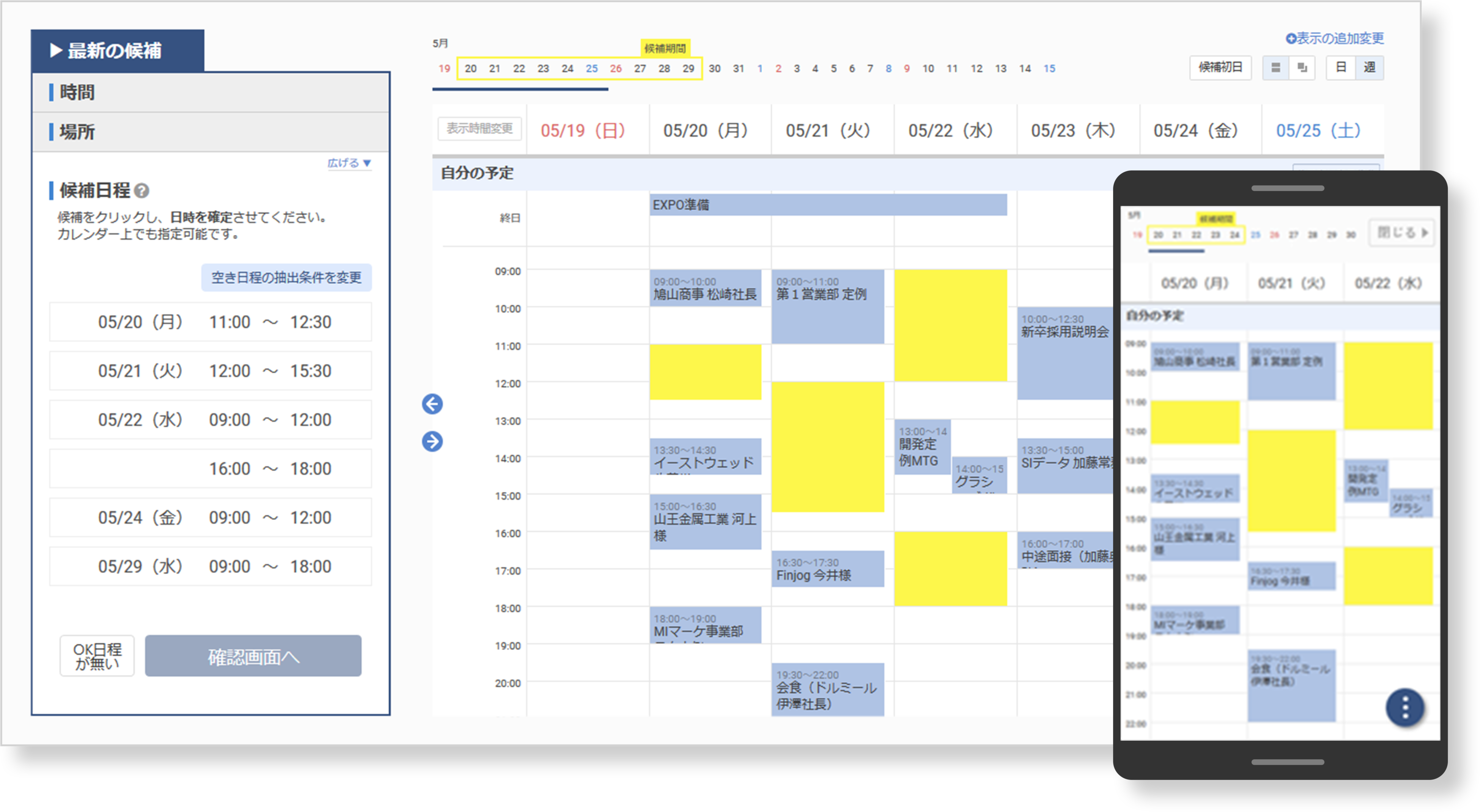 ※7: 会議日程が決定した後に、カレンダーツールへの予定の自動登録や関係者への自動通知も可能です。