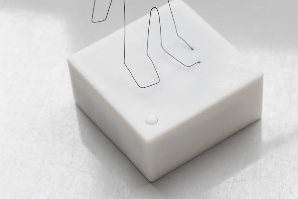 「なにか一緒に面白いことをしよう」というブレストから始まり、形状記憶合金を使った様々なプロダクトのアイディアをざっくばらんに話し合いを重ねていました。そんな中でたどりついたのが今回の不思議な動くオブジェ「線人間」です。