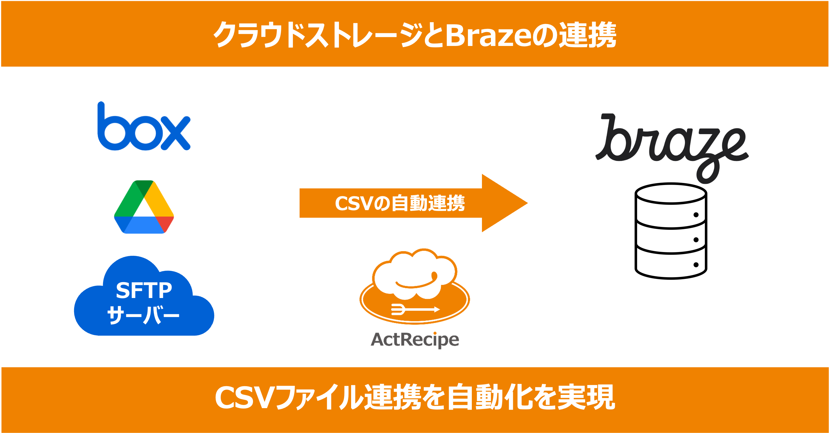 今般、「Braze」を活用されるマーケティング部門をはじめとした各ご担当者様にも、これまでに「ActRecipe」のご提供を通じて得られた知見等をお届けできるものと感じ、まずはCSVファイルのシンプルな連携からご支援をさせていただくことといたしました。