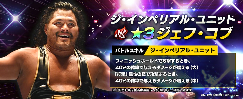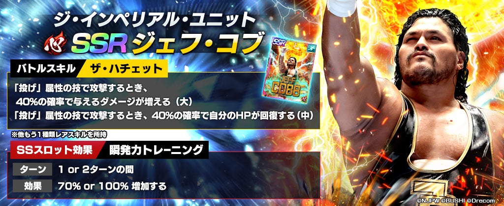ジェフ・コブ選手が初参戦する新★3選手「[ジ・インペリアル・ユニット]ジェフ・コブ」が初登場するステップアップ選手スカウトが開催中。