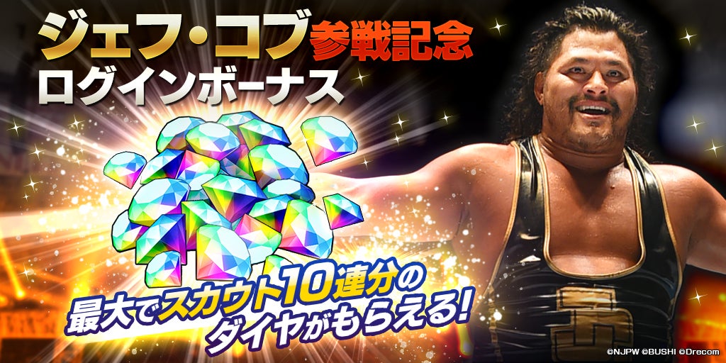 - ジェフ・コブ選手参戦記念として、累計1,500ダイヤが獲得できる「ジェフ・コブ参戦記念ログインボーナス」が開催!