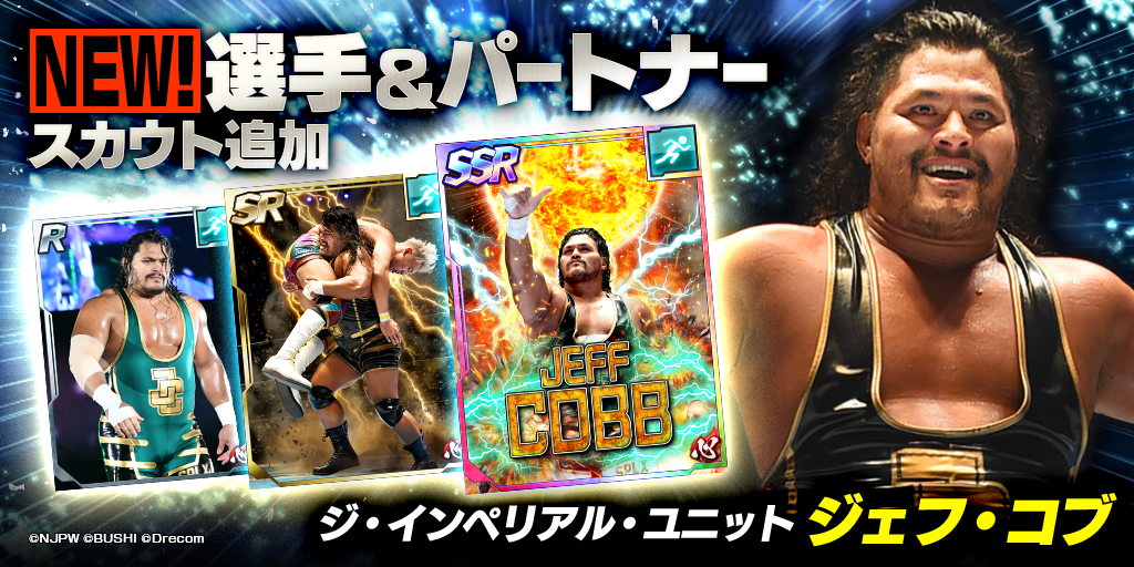 ジェフ・コブ選手が初参戦する新★3選手「[ジ・インペリアル・ユニット]ジェフ・コブ」が初登場するステップアップ選手スカウトが開催中。