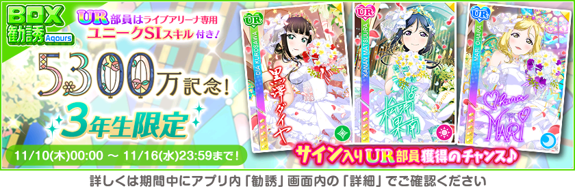 ■著作権表記:Ⓒ2013 プロジェクトラブライブ!Ⓒ2017 プロジェクトラブライブ!サンシャイン!! ©KLabGames ©bushiroad
