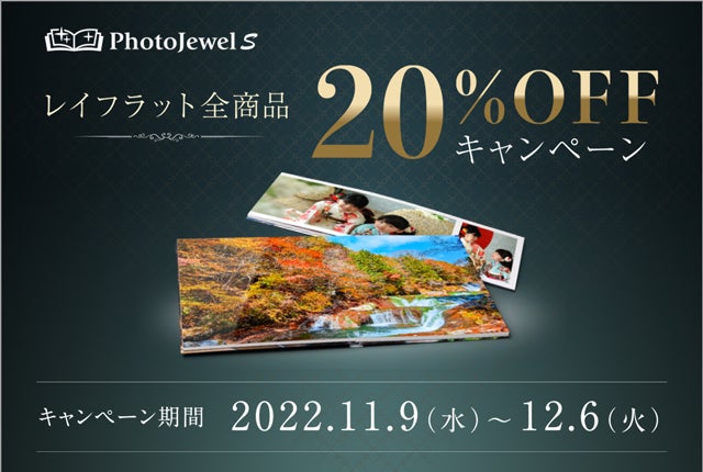 内容:PhotoJewel Sで人気のレイフラット商品を20%OFFでご購入できるクーポンをご利用いただけます。