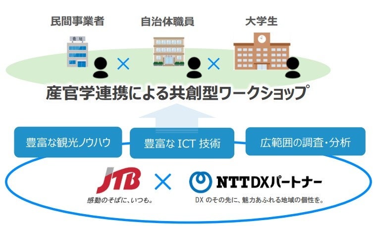 東京湾アクアライン周辺の交通円滑化及び地域活性化の施策立案に向けて、NTT DXパートナーにて混雑状況の実態把握、観光客の実態調査・分析、他自治体等の先進事例研究を実施し、地域課題の解決を目指し全国で地域交流事業を推進している株式会社JTB(以下、「JTB」)と産官学連携による共創型ワークショップを共同企画・実施します。また、今後のDX等を活用した地域貢献に向けて、本ワークショップに東日本電信電話株式会社(NTT東日本)千葉事業部が参加予定です。