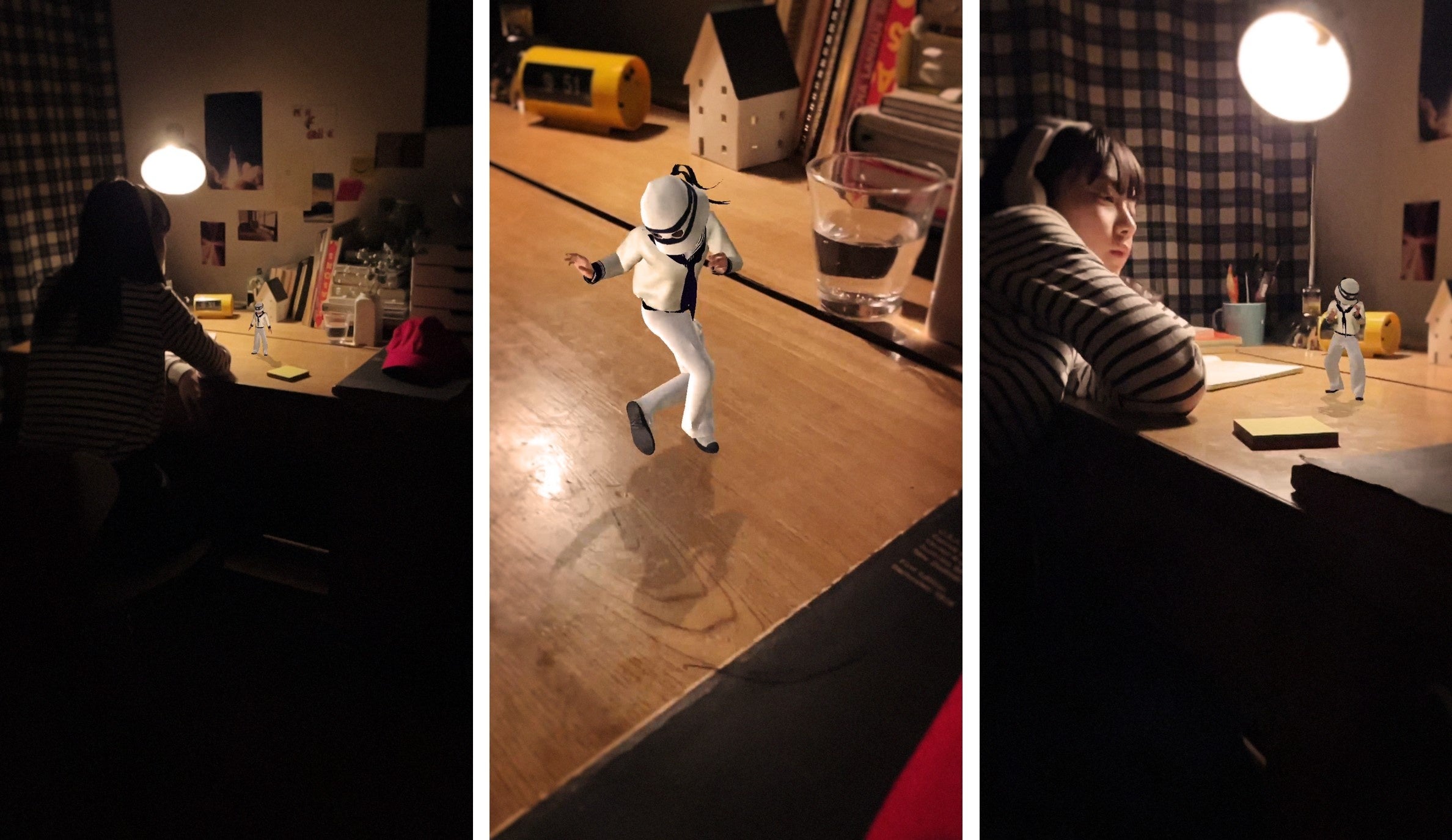 MEWの持つ高いAR技術によって現実空間にアバターを出現させ、カメラワークをつけたアバターの撮影が可能になります。