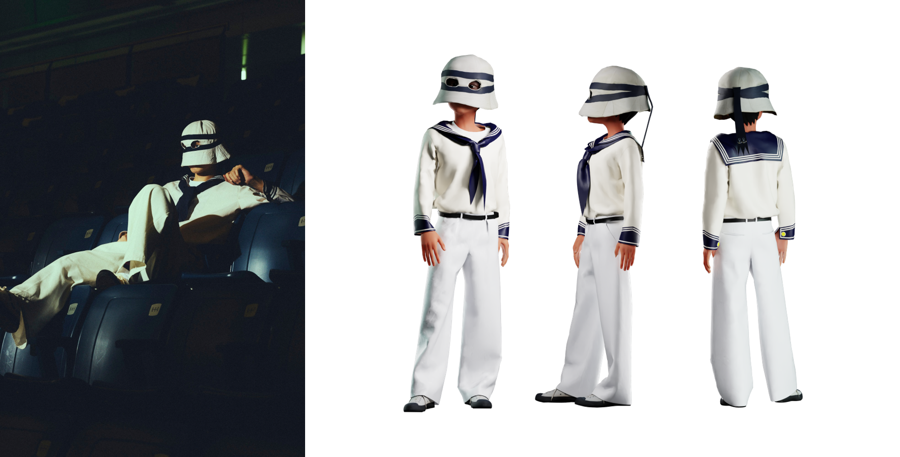 リアルな服の型紙から、アバターが着ることができるデジタル服に変換して衣服を作り、実際にアバターに着せることができるようになります。また洋服の物理演算によってアバターの動きに合わせたリアルな服の動きの表現も開発中です。ティザー映像では、新曲「MOONRAKER」のミュージックビデオ用に制作された水兵モチーフの衣装をアバター用のデジタル服に変換しています。
