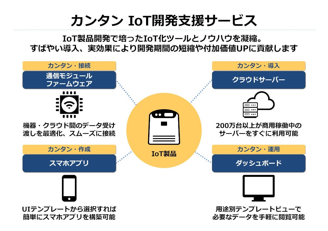 当社サービスは、700以上(2022年4月25日現在)のIoT製品開発実績で培ったIoT化ツールとノウハウを凝縮。すばやい導入を実現できるサービスをご紹介します。