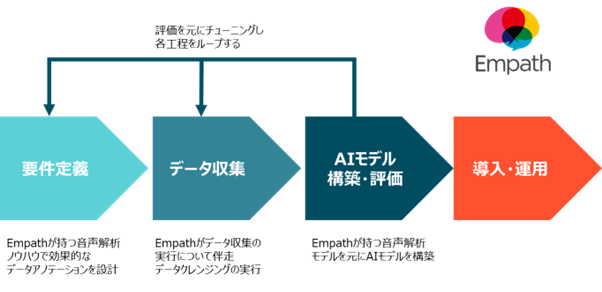 従来の感情解析・会話解析分野では、パッケージ提供だけではそれぞれのコールセンター個別の課題に対して正鵠を射るサービス提供が難しい場合がありました。そのためEmpathではお客様ごとにモデルのチューニング等を実施するケースが多かったのですが、この度個別のAI開発ノウハウが固まり、自動化したモデル構築ができるようになり、より多くのユーザーに利用可能なサービスとしてカスタマイズ音声解析AI開発サービスを提供する運びとなりました。