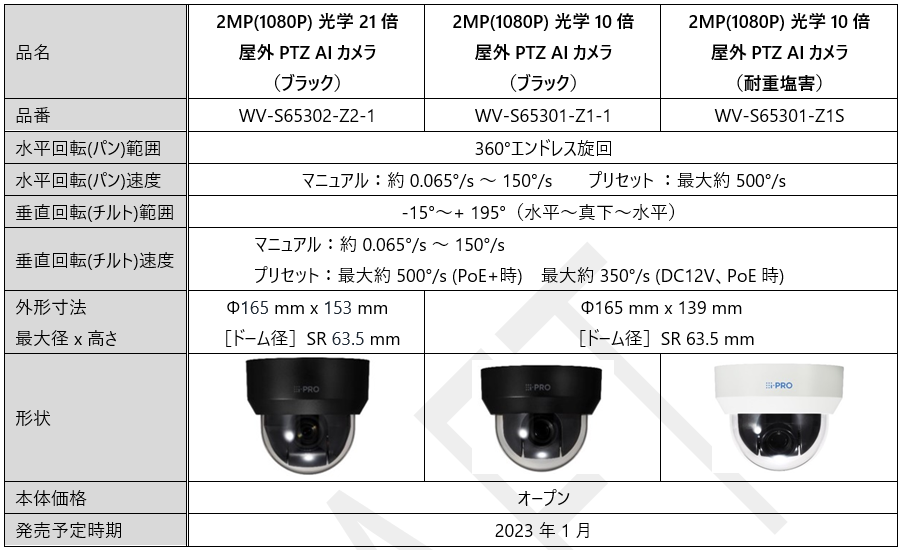 ・技術仕様詳細については、i-PRO コンポーネント Webカタログ (https://cwc.i-pro.com/) で公開しています。
