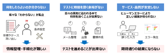 ・各担当者に実施するのではなく、人に依存しない安定的なテストを実施したい