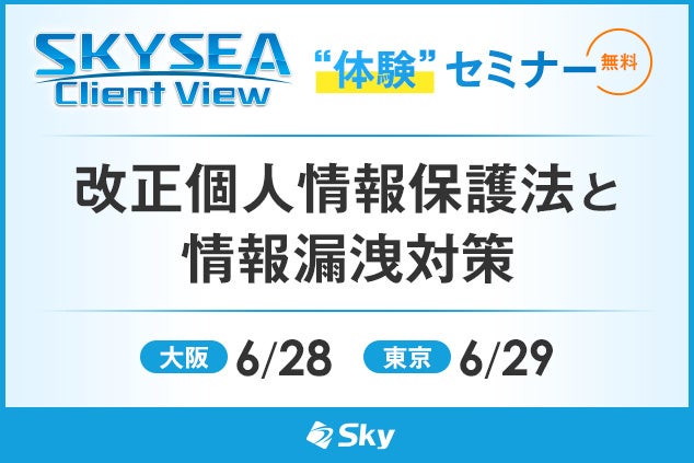 本セミナーでは、個人情報保護法の改正ポイントを踏まえつつ、組織内に点在する個人情報の把握や漏洩の防止、漏洩時の被害最小化に向けた対策など「SKYSEA Client View」でご支援できることをご紹介します。受講費は無料です。ぜひご参加ください。