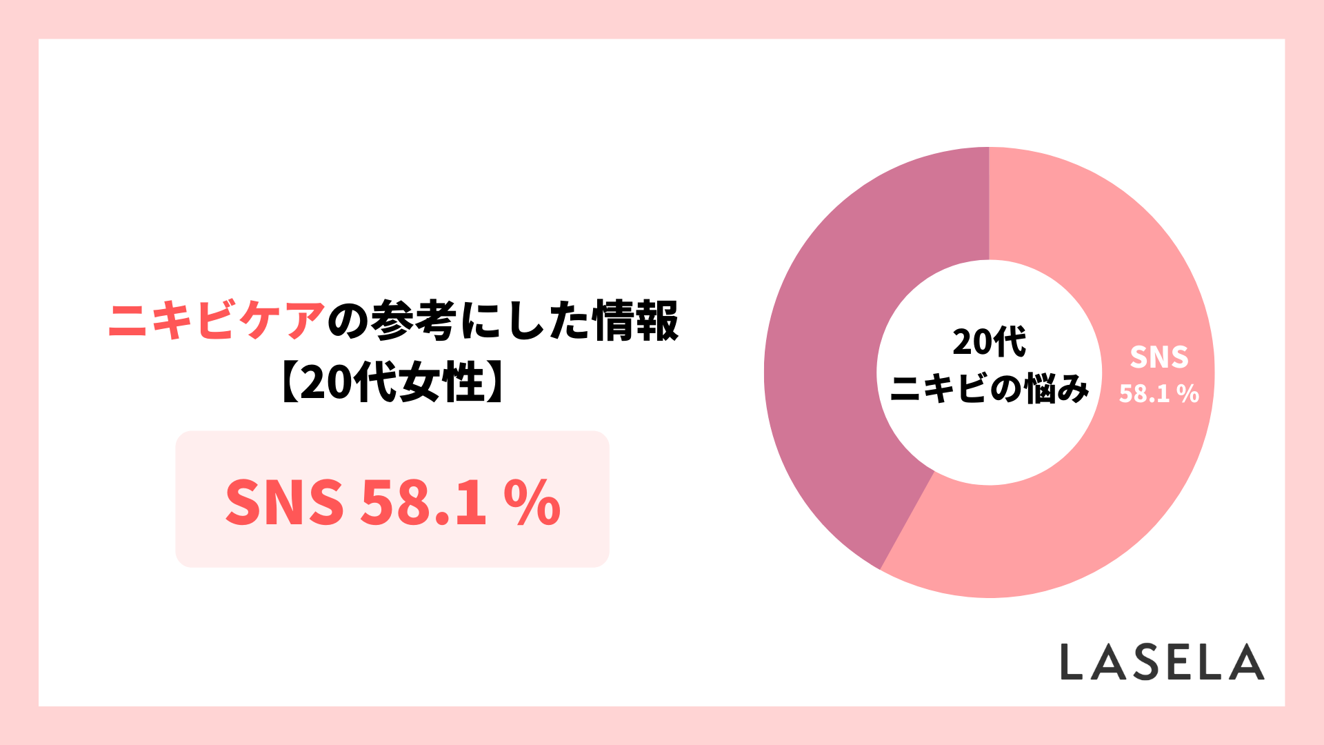 20代の女性1,022人が回答した解決したい肌の悩みは1位「ニキビ」で46.6%。ニキビの悩みを抱える人の肌質は「脂性肌(58.3%)」が最も多く、続いて「敏感肌(51.1%)」でした。ニキビケア商品を選ぶ上で重視するのは「肌質」と「成分」。商品を購入したきっかけを「インターネット」と回答した人のうち、SNSの情報を参考にした人が58.1%であることがわかりました。