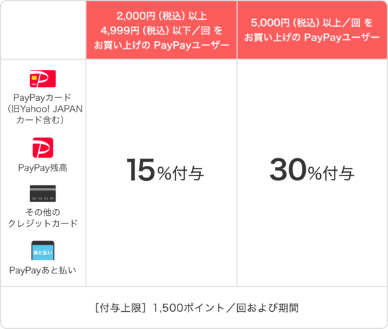 ※1:PayPay利用特典および同時開催する他の総付キャンペーンの適用条件を充たす場合、本キャンペーンによる付与分は、変更になる場合がございます。