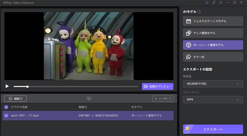 HitPaw Video Enhancerを使って、テレタビーズを高画質にする手順