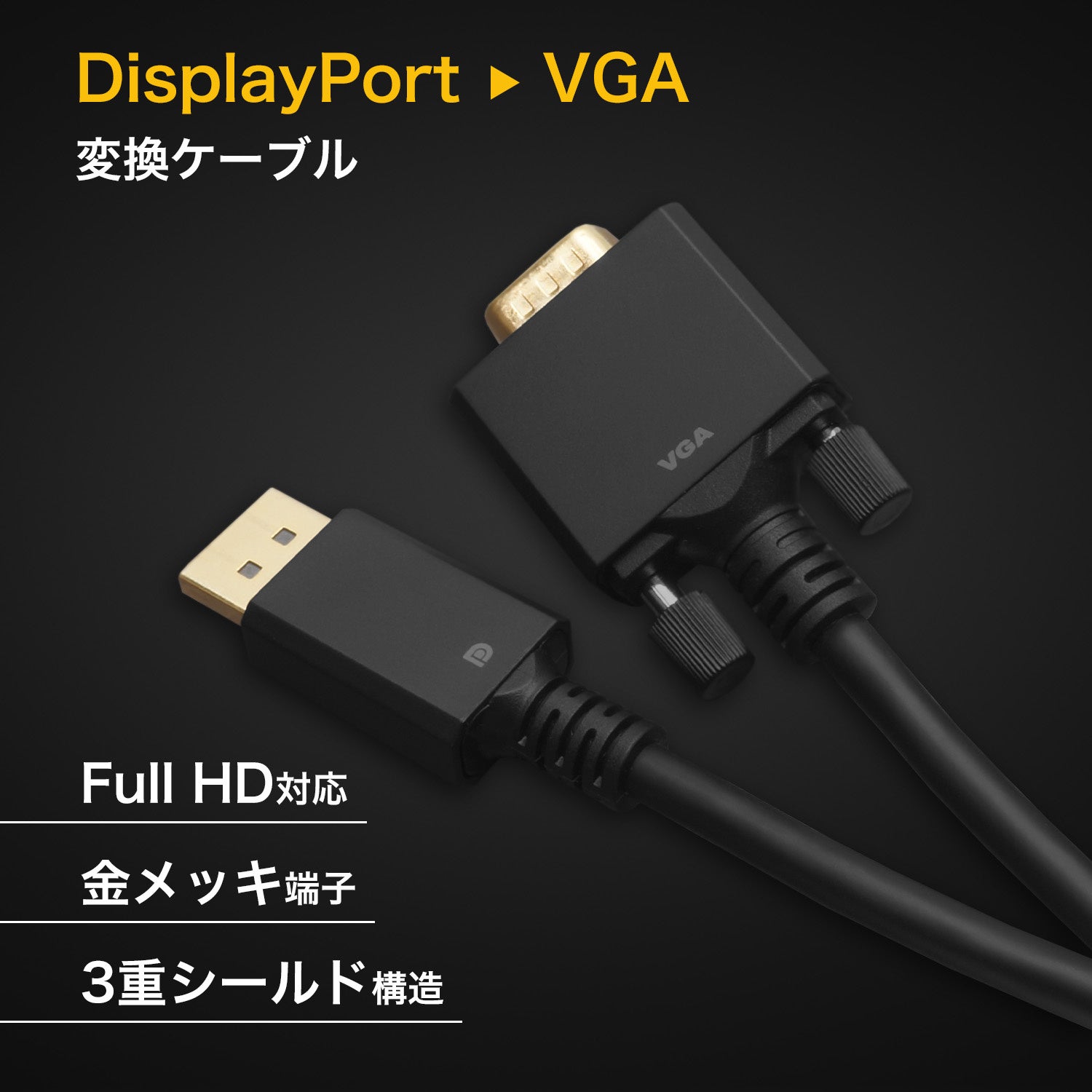 DisplayPort端子を搭載したパソコンから、VGA端子を搭載したディスプレイモニターなどへ映像出力が