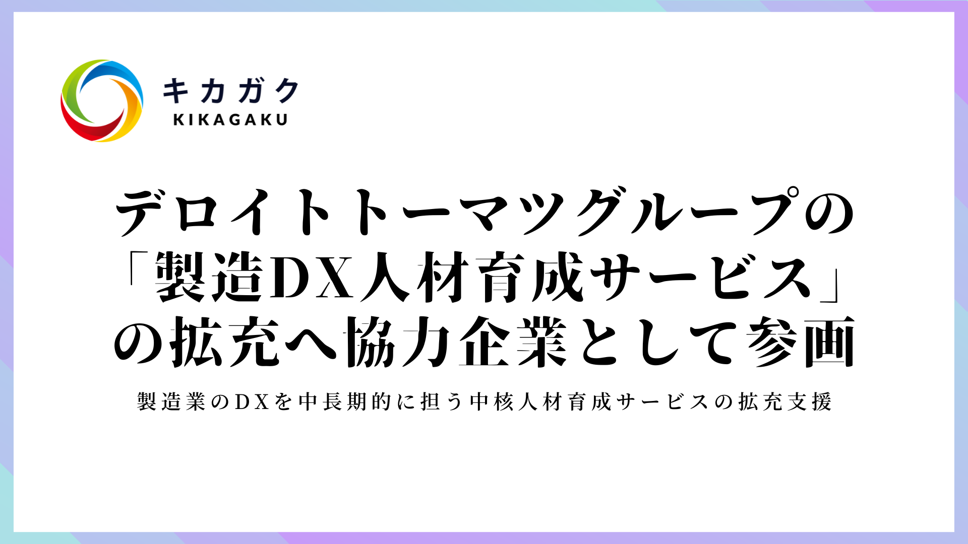 今回、キカガクはコア人材育成トレーニング及びテクノロジートレーニングへの教育コンテンツの提供を予定しています。