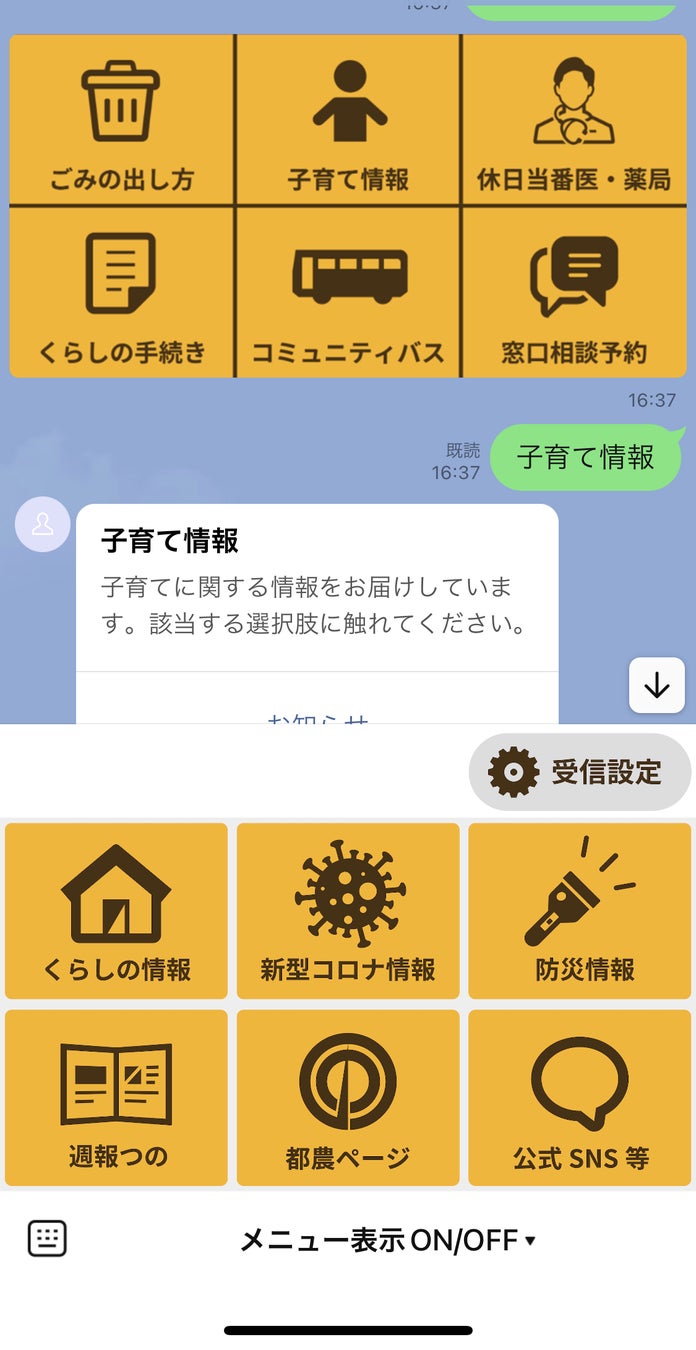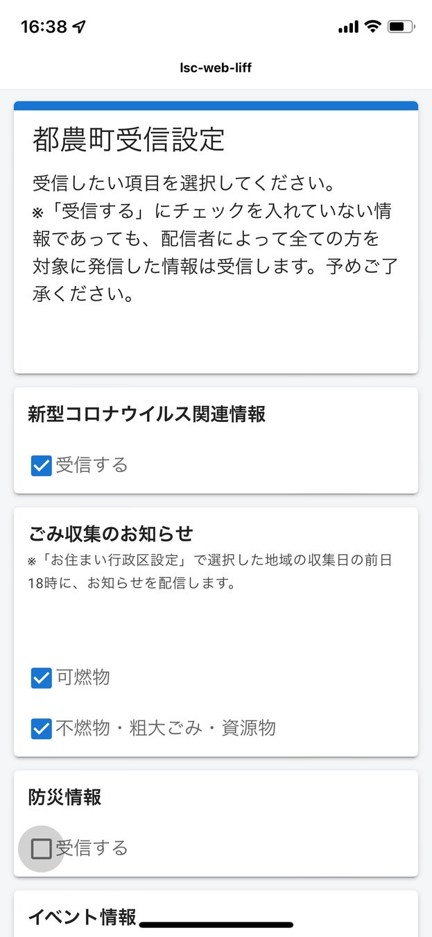ユーザーが欲しい情報を選択できる受信設定フォームをメニューに設置。町政情報や防災に関する情報やごみ捨てのリマインド配信など、ユーザーにとってニーズの高い情報を提供することで、LINEを通じたサービスの拡充に取り組んでいます。