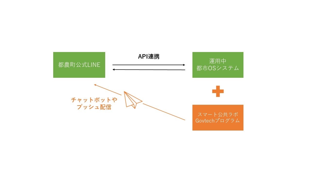 都農町の場合、既存のMessaging API 設定はそのままに、チャットボットやセグメント配信に必要な情報を併用中のシステムと連携することで両サービスの併存を可能としております。