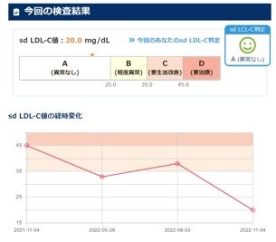 また、内臓脂肪やsd LDL-Cの状態による将来の動脈硬化リスクも合わせて検査します。