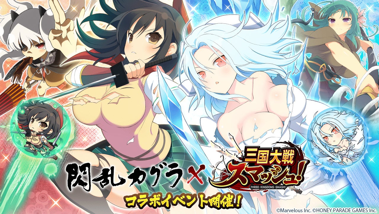 爽快ひっぱり大戦アクション『三国大戦スマッシュ!』が『閃乱カグラ』シリーズとコラボ開催!シノビたちがコラボ武将となって参戦!最大150連分のガチャチケットもらえる!
