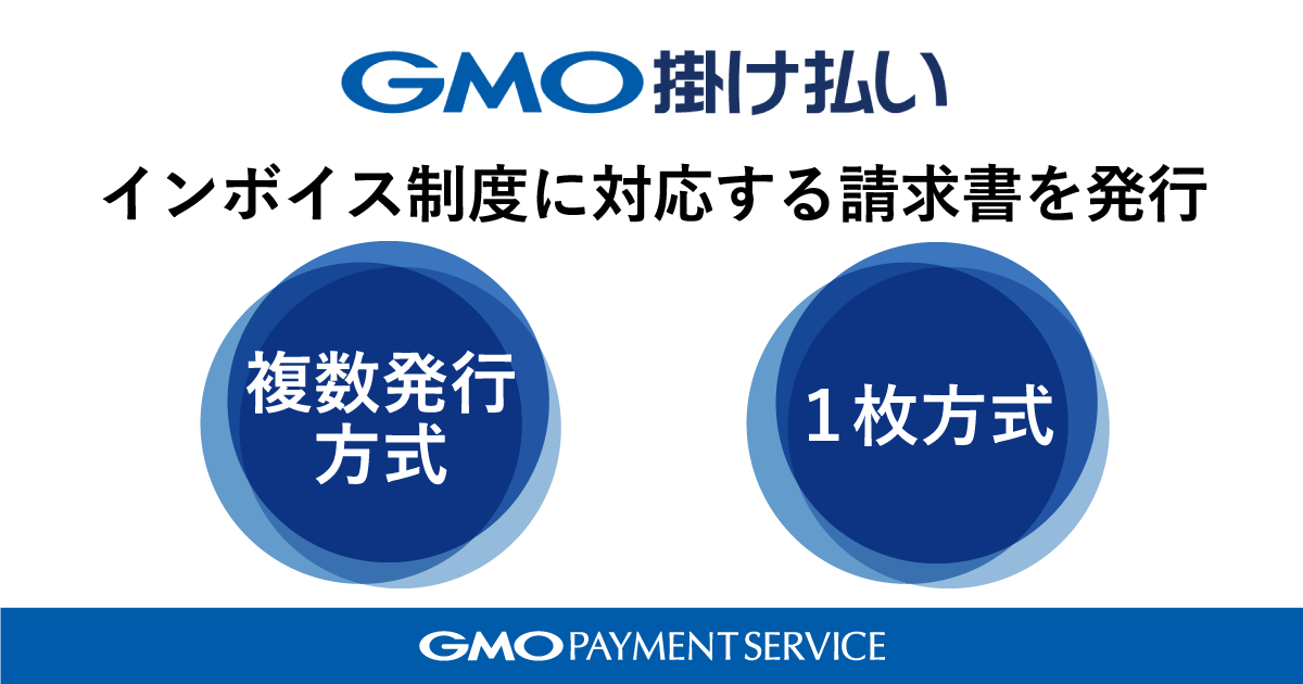 GMO‐PSはBtoB取引向け後払い決済サービス「GMO掛け払い」において、インボイス制度に対応した請求書を発行するオプションサービス「インボイス発行サービス」の提供を2023年7月(予定)より開始いたします。「インボイス発行サービス」では、適格請求書の必須項目を満たした「複数発行方式」「1枚方式」の2タイプの請求書を発行できるため、「GMO掛け払い」をご利用の適格請求書発行事業者は、自社のビジネスに合わせた適格請求書を選択することが可能となります。