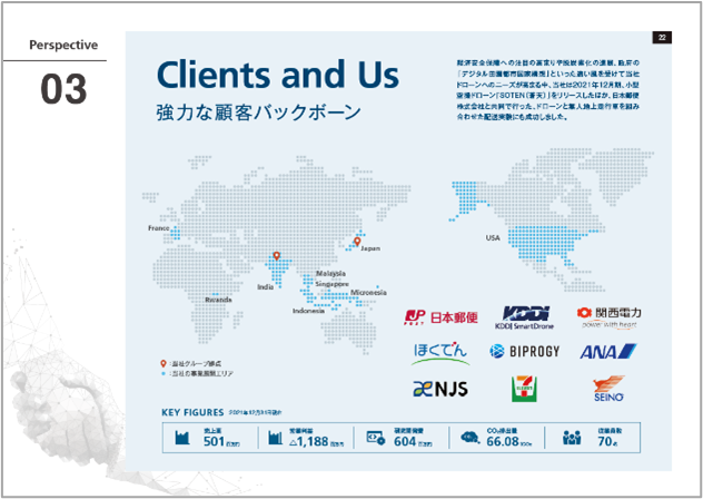 ACSLは、自律制御をはじめとしたロボティクス技術を追求する企業です。現在、顧客それぞれの課題を解決するドローンの開発・製造・販売に事業を特化しています。常に最先端の技術を開発し、社会に実装していくこと。それにより社会の持続可能性や生産性を高め、危険で厳しい仕事から人々を解放すること。これが、私たちの目指すゴールです。「Integrated Report 2022」では、この価値創造におけるACSLの現在地、成長戦略や強みを、CxOインタビューや従業員座談会などの特集を交えつつお伝えいたします。