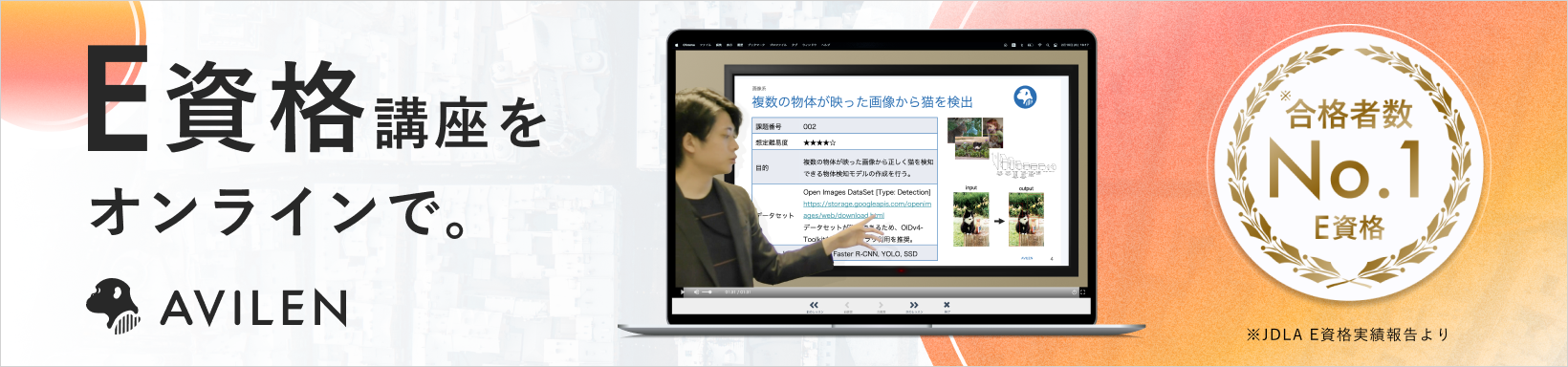 AVILENのE資格講座は、2021#1~2022#2の4期連続でE資格合格者輩出数No.1を達成しているJDLA認定プログラムです。本講座を修了することで、E資格の受験資格を獲得することができます。