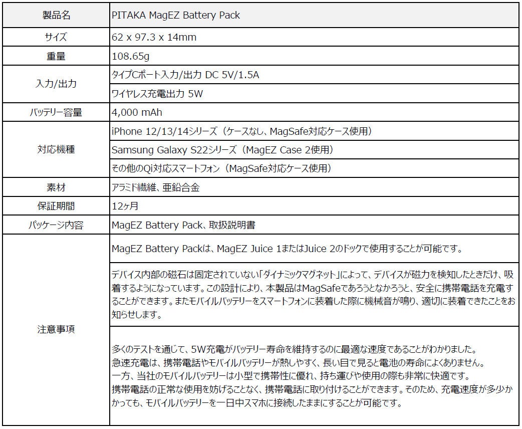 公式日本語販売サイト :https://pitakajapan.com/products/magez-battery-pack