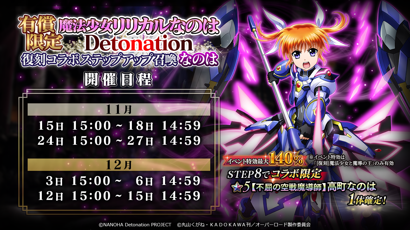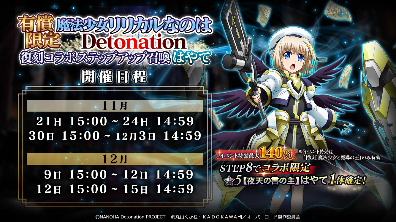 ■コラボ召喚『魔法少女リリカルなのはDetonation復刻コラボステップアップ召喚』開催!