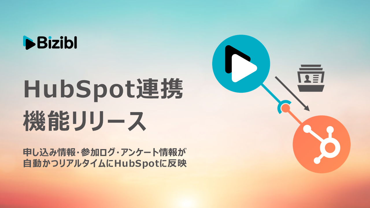 本機能の実装により、「Bizibl」で開催するウェビナーに対し、参加者の申し込み情報、参加ログ、アンケート回答情報といったデータを、それぞれリアルタイムに「HubSpot」に自動反映することが可能となります。ウェビナー業務工数を軽減するだけでなく、ウェビナーで獲得した顧客情報をスピーディかつ適切に活用した営業活動を実現することができます。